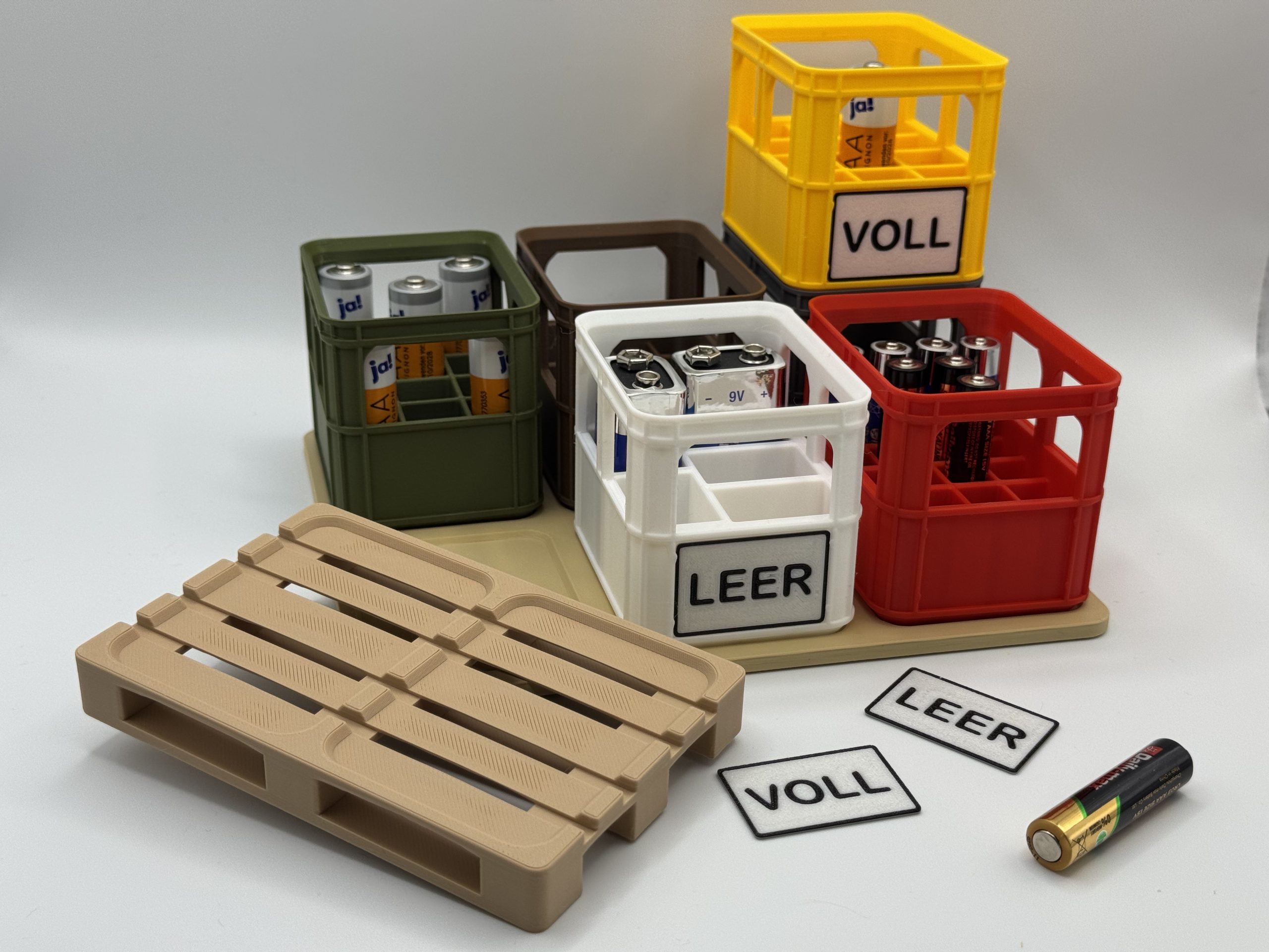 Die Batterie-Kisten sind in verschiedenen Farben erhältlich – perfekt zum Sortieren (z.B. nach Typ, oder Einsatzbereich) oder um deine lieblings-Getränkekiste nachzustellen.