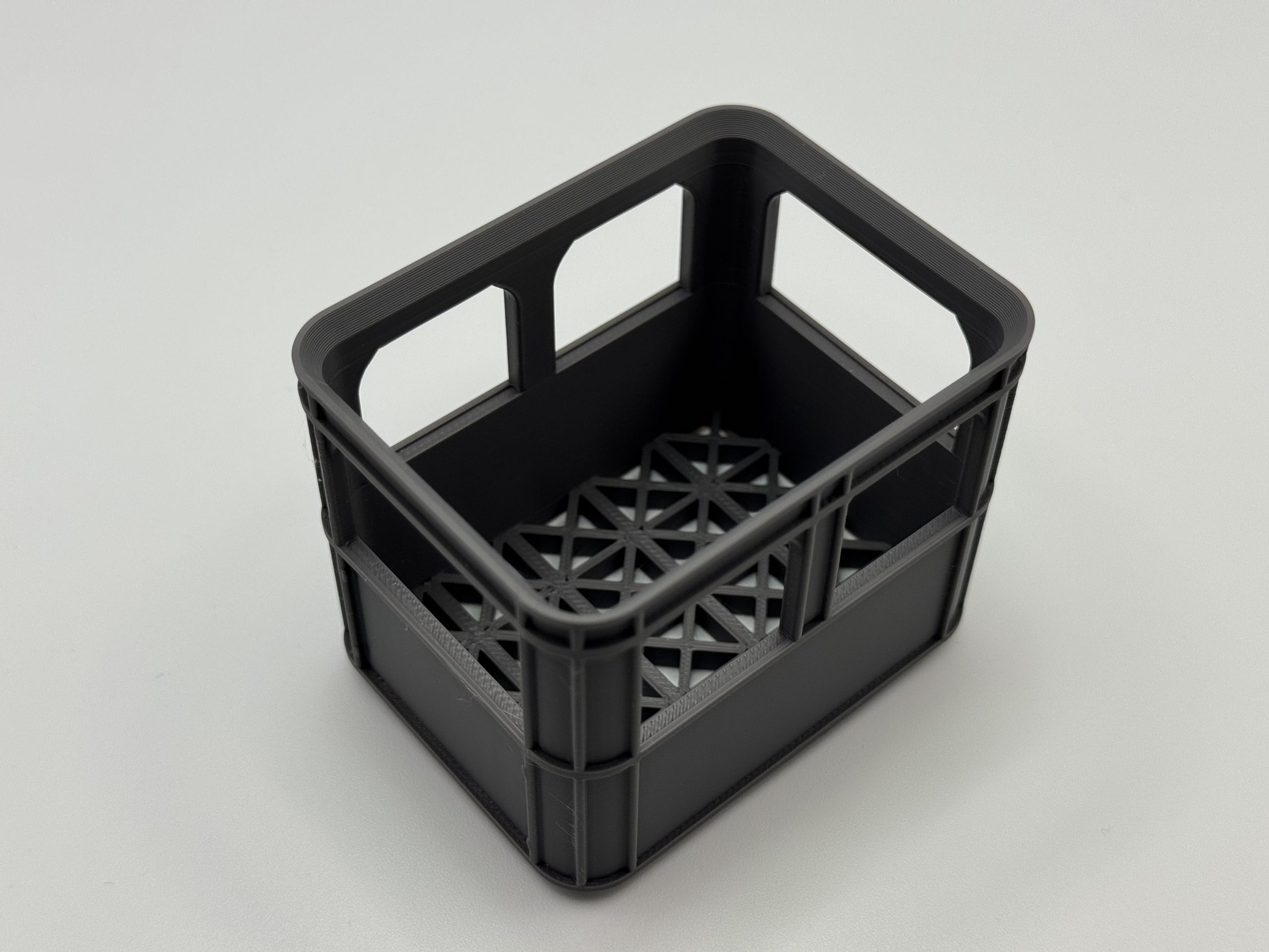 Die Kiste ist 3D-gedruckt, robust und so gestaltet, dass sie sich perfekt stapeln lässt – für ein sauberes, platzsparendes System.