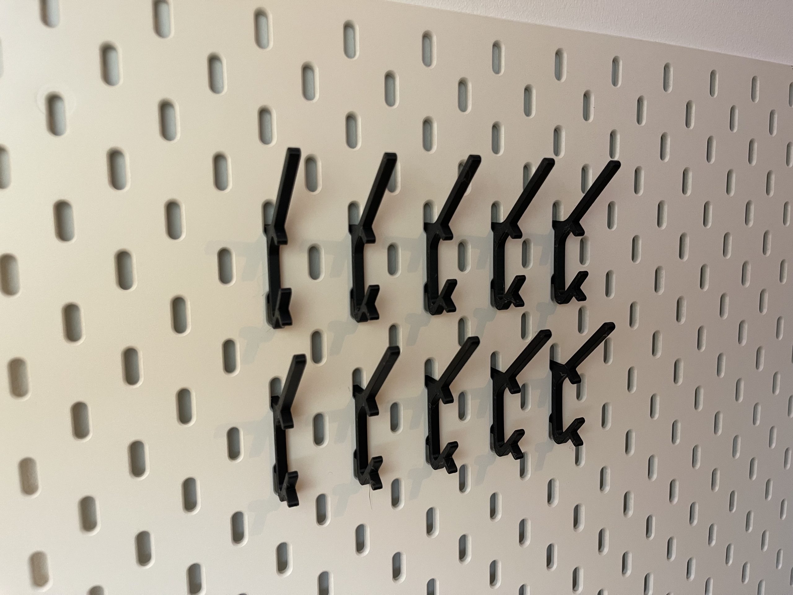 Speziell für das IKEA Skadis Lochwandsystem entworfen, lässt sich der Halter ganz einfach einhängen. Alles sofort griffbereit, direkt an der Wand.